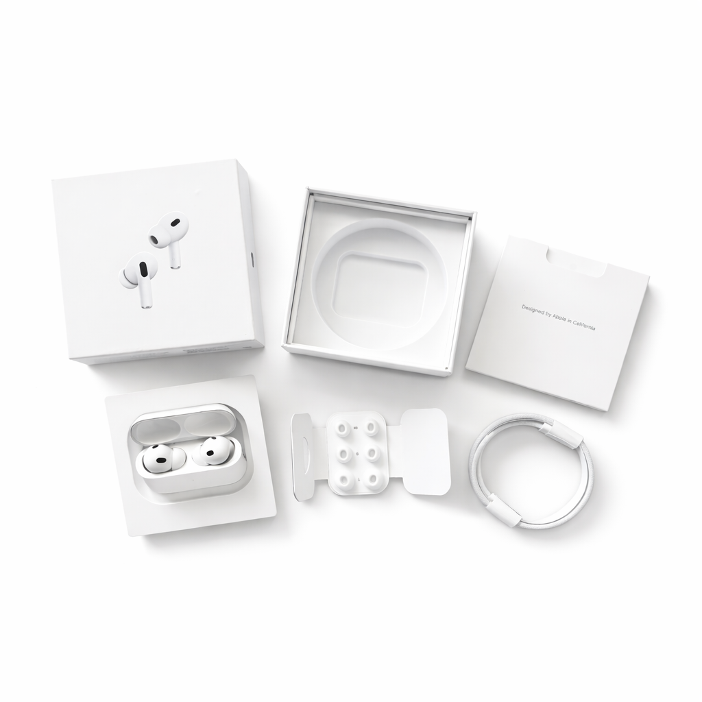 The sleek white earbuds feature a comfortable in-ear fit with interchangeable silicone tips for all-day wear, while the compact MagSafe charging case offers effortless charging and portability. Designed with precision and a clean, modern aesthetic, Pods Pro blend performance with style.