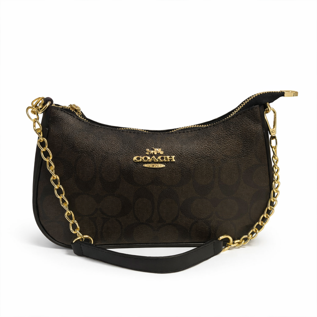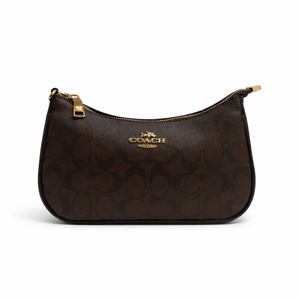 Elevate your everyday look with this timeless shoulder bag crafted in signature coated canvas. Featuring a rich brown monogram pattern and smooth leather trim, this piece blends classic style with modern versatility. The gold-tone logo hardware adds a refined touch, while the curved silhouette keeps the design sleek and effortless.